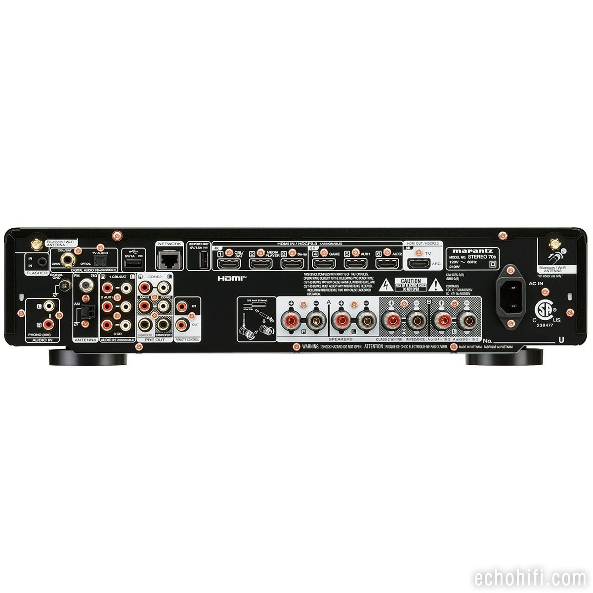 75 watt per channel (Class A/B) stereo receiver with 4K/8K HDMI, digital (coax/optical), Bluetooth, built-in