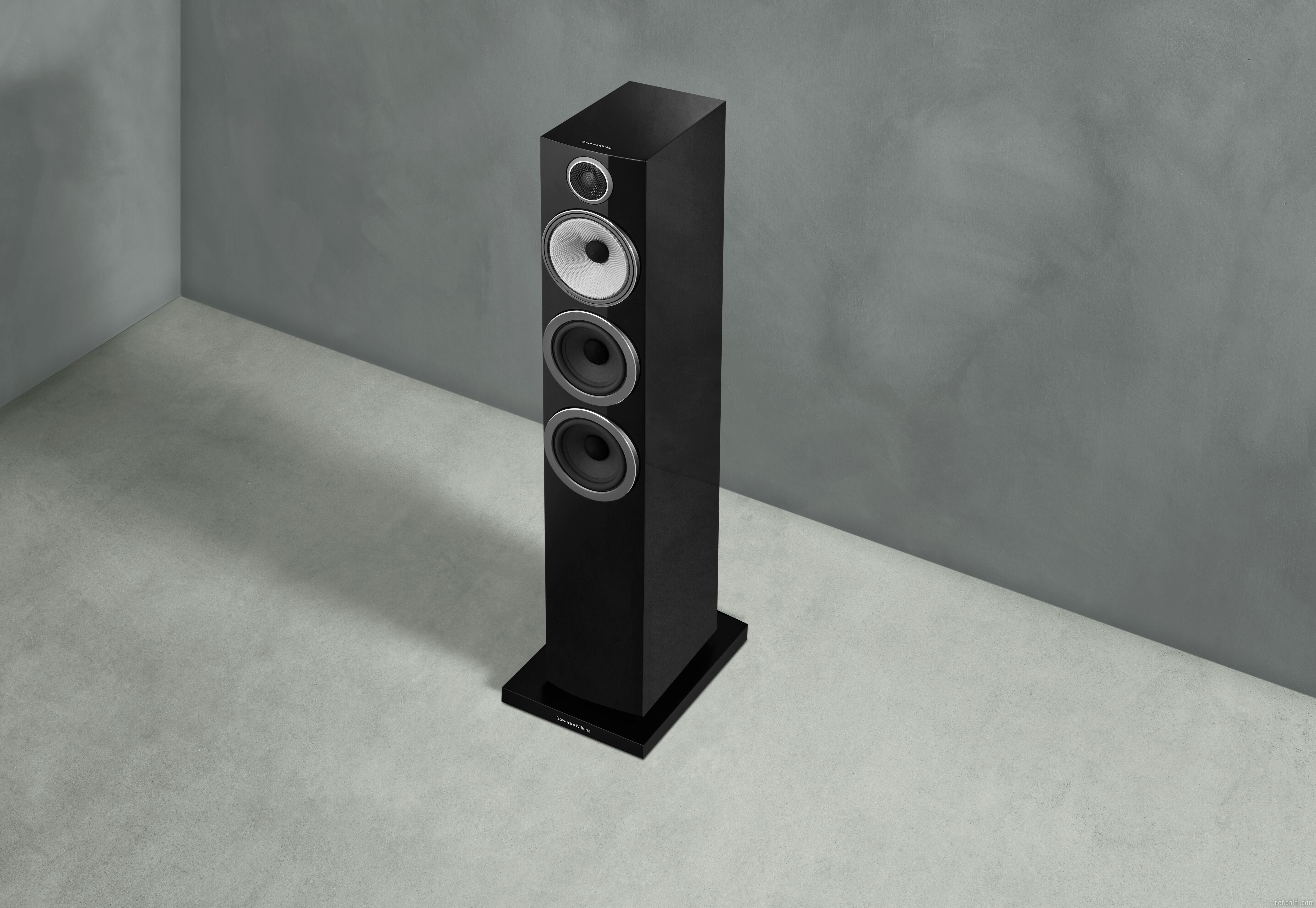 Slim floorstanders with a big presence. Gloss black in stock. Stock Photos.